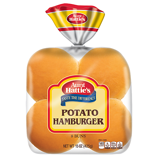 Aunt Hattie's® Potato hamburger buns are soft, hearty and ideal for scrumptious burgers from the grill or grilled chicken sandwiches topped with veggies. These potato bread buns are delicately baked to a warm golden color, carefully wrapped and hand delivered to your favorite store. For picnics, cookouts or family night dinners, Aunt Hattie's potato hamburger buns are sure to put a smile on everyone's face.