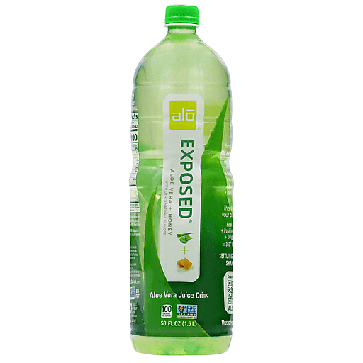 Alo® Exposed Aloe Vera Juice Drink Original + Honey. Real aloe vera straight from the leaf. 60 calories per 8 oz. Non GMO Project Verified. nongmoproject.org. 50 fl oz (1.5L).